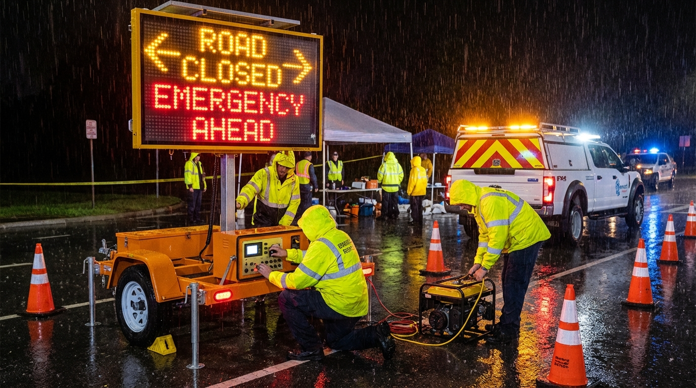 By combining live data with automated control, RescAlert enables agencies to adapt traffic operations quickly in response to congestion, accidents, severe weather, or emergency events. Through AI-driven analytics and rule-based automation, RescAlert’s traffic signals and signage can adjust timing, display targeted messages, or activate warnings based on real-time conditions. Dynamic signage can provide drivers with clear instructions such as detours, lane closures, speed advisories, or emergency notifications, while integrated signals help manage intersections and corridors more efficiently. Real-time monitoring, visual confirmation, and alerts give operators immediate situational awareness and control across wide transportation networks.